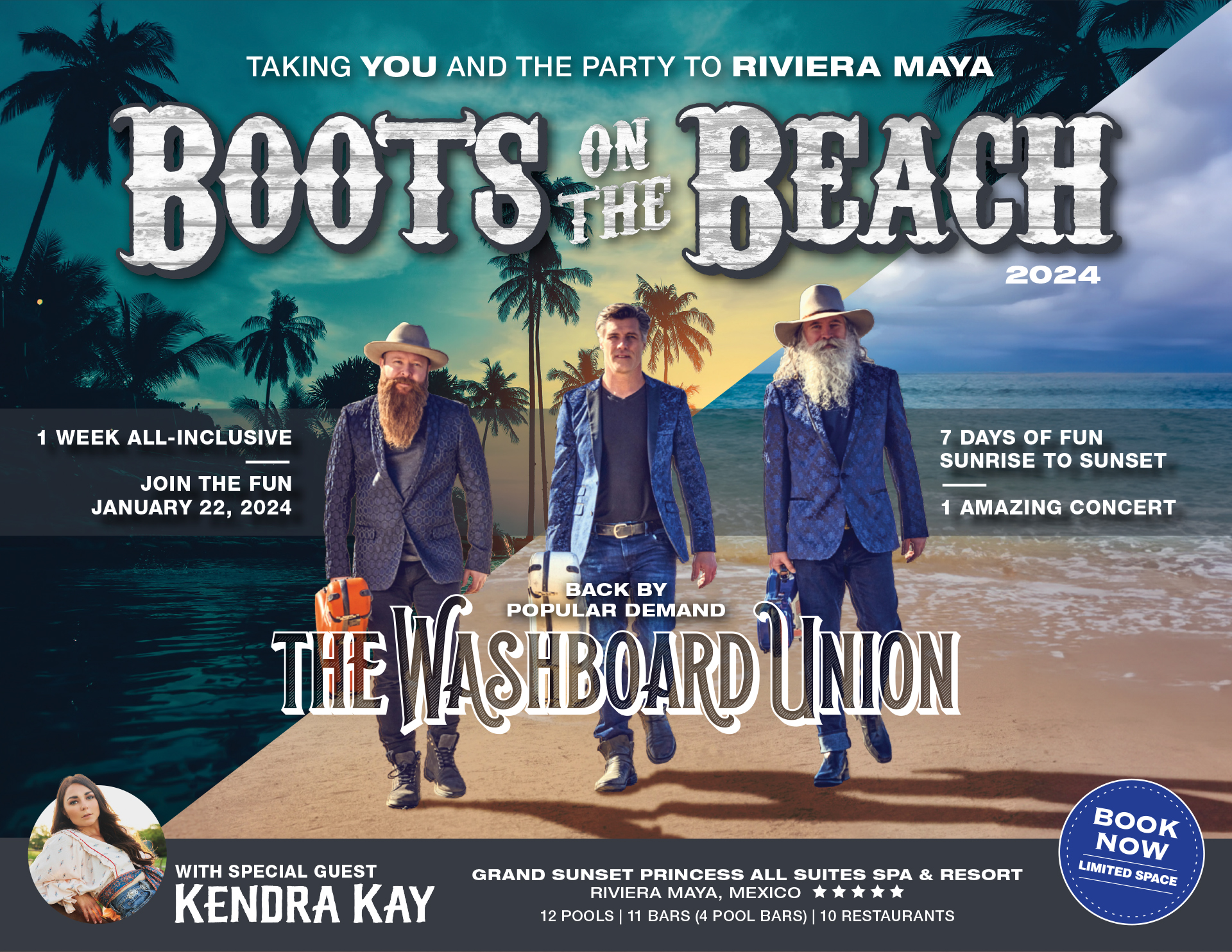 Source : www.facebook.comBoots on the Beach 2024 Live in Riviera Maya ft. The Washboard